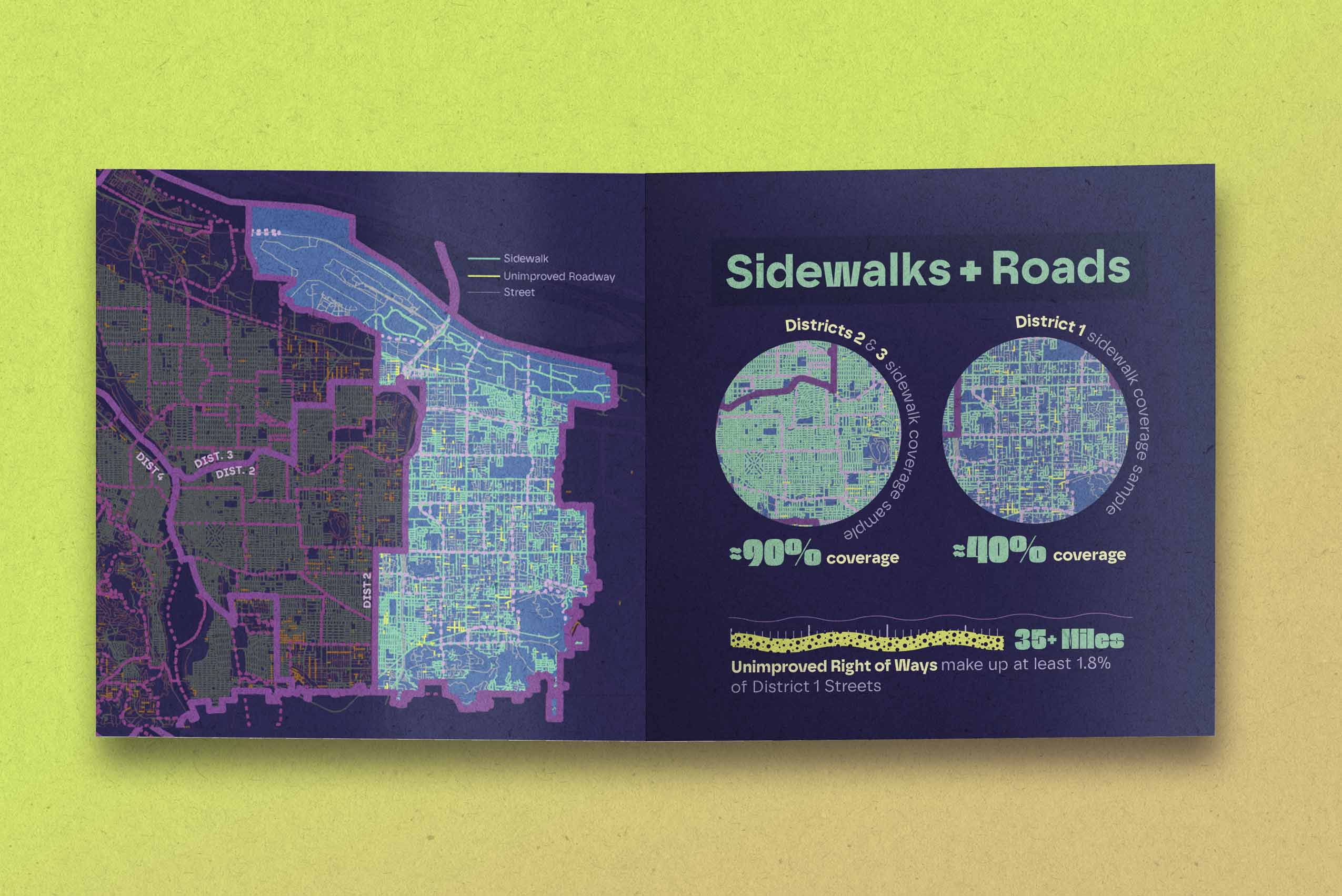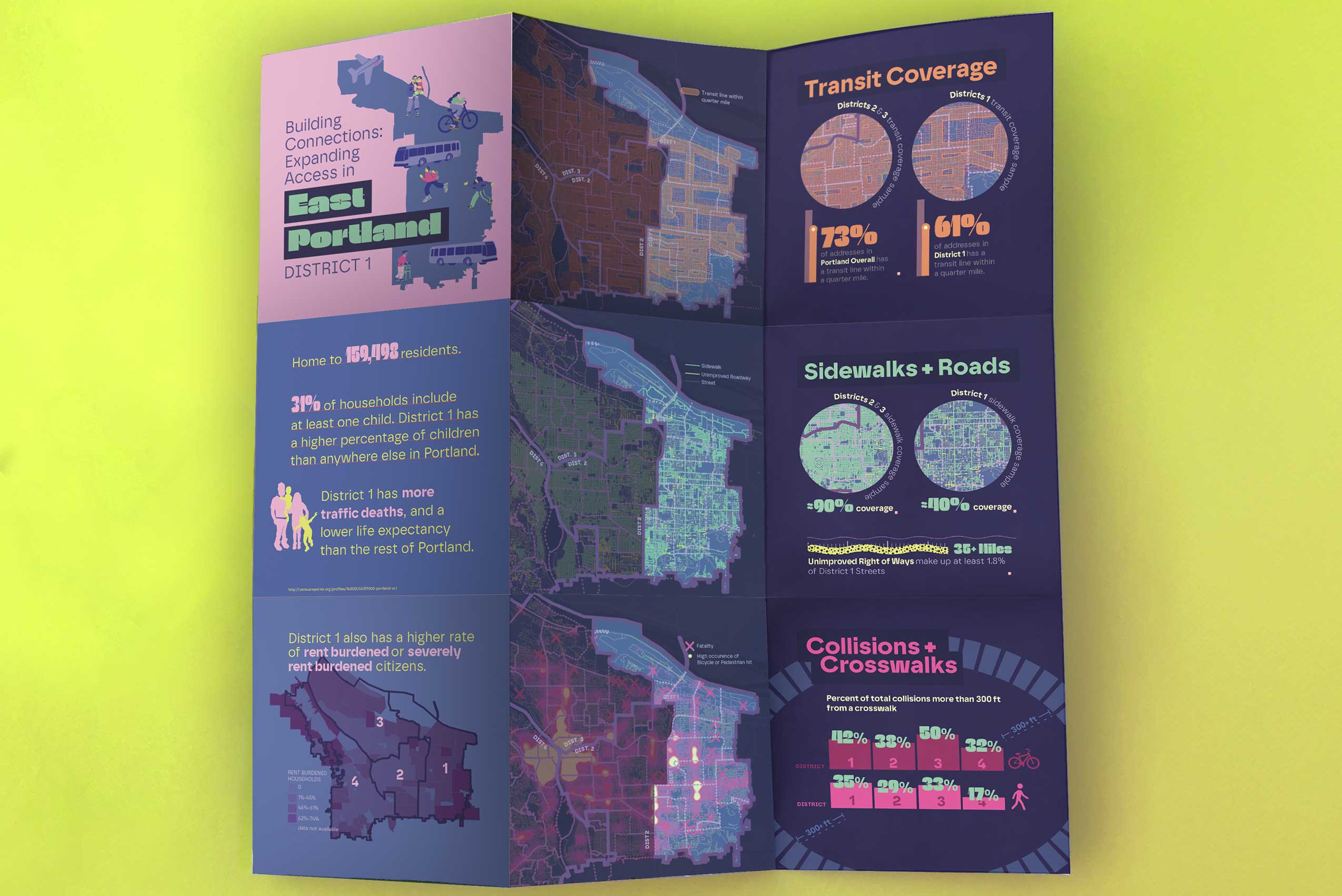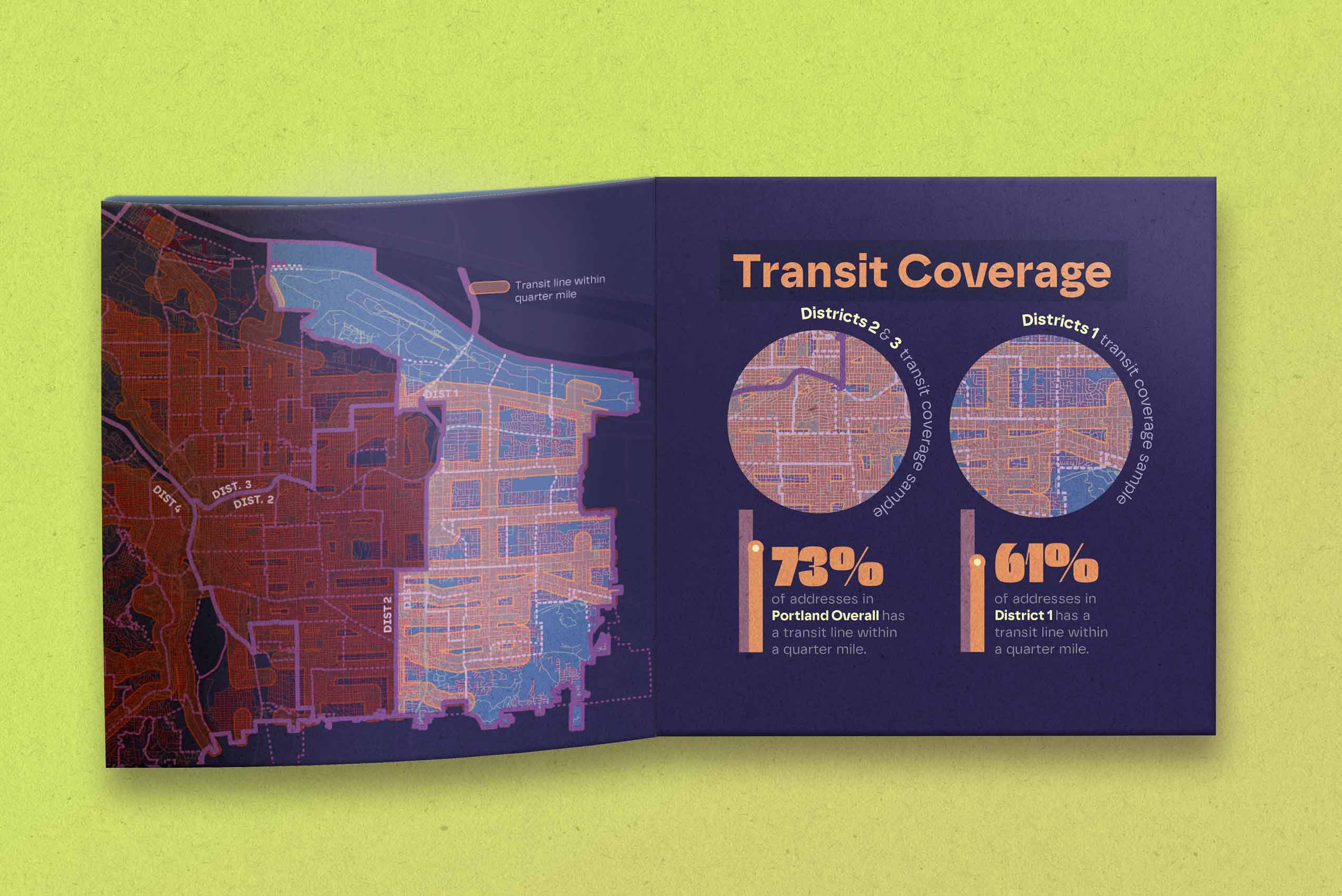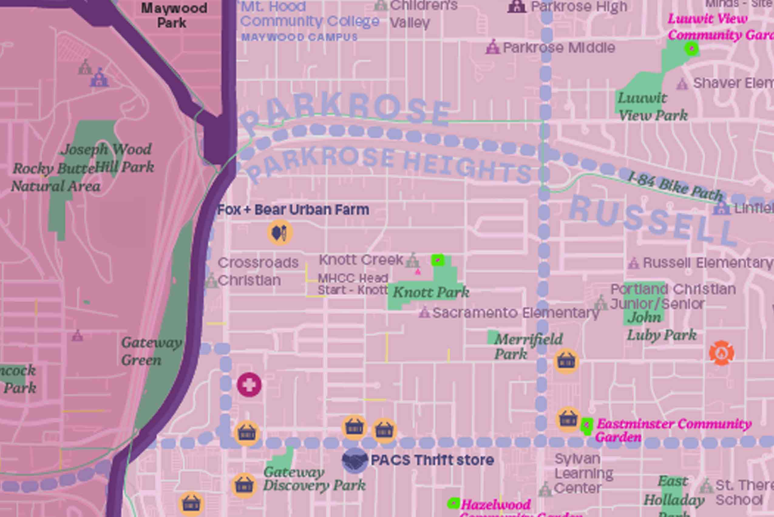 Map of transit disparities and neighborhood resources in East Portland, Council District 1.